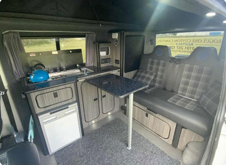 The Storm Trooper campervan is a modern, fully equipped and pet-friendly campervan for hire in the North East, perfect for UK road trips, coastal breaks and countryside adventures. Easy to drive and designed for comfort, this campervan is ideal for couples or small families looking to explore the UK at their own pace.